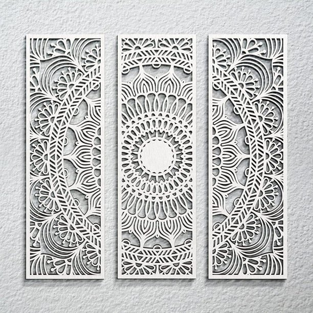 Mandala Wall Art 3 Pieces Carved Wood Wall Art Floral Aesthetic Wooden Plaque Set Wood Carving Wall Decor Elegant Modern Cutout White Wood Wall Plaque For Home Kitchen Bathroom Decoration Walmart Com